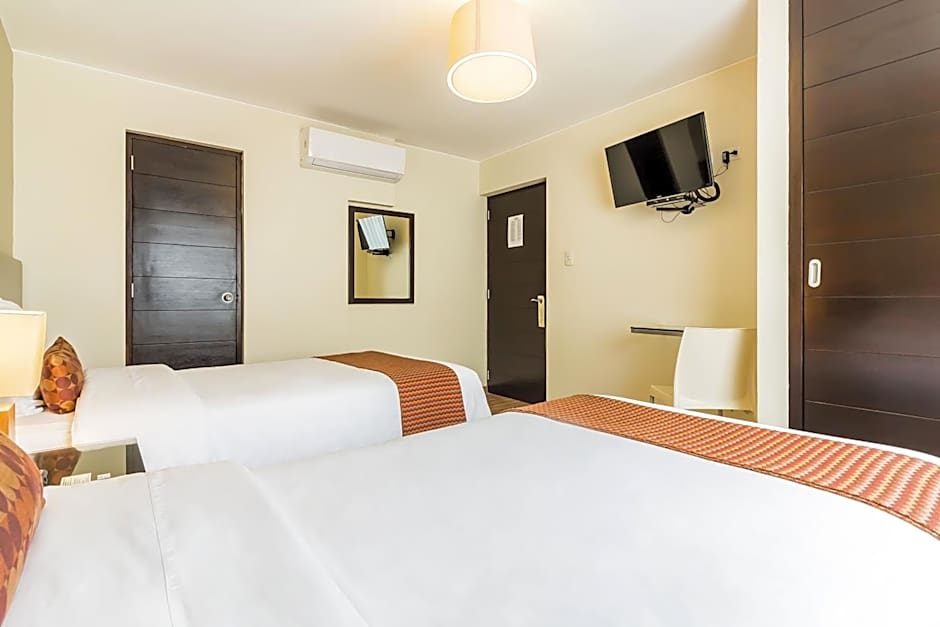 Providing free toiletries, this twin room includes a private bathroom with a shower and a hairdryer. The air-conditioned twin room provides a flat-screen TV with cable channels, soundproof walls, a safe deposit box, parquet floors as well as city views. The unit offers 2 beds.